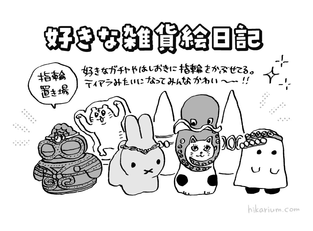 ガチャのフィギュアを指輪置き場にしています。かわいい。