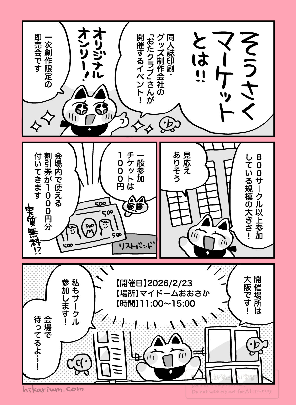 私もサークル参加した一次創作イベント「そうさくマーケット vol.2」について、一般参加者さん向けにまとめた漫画です。
