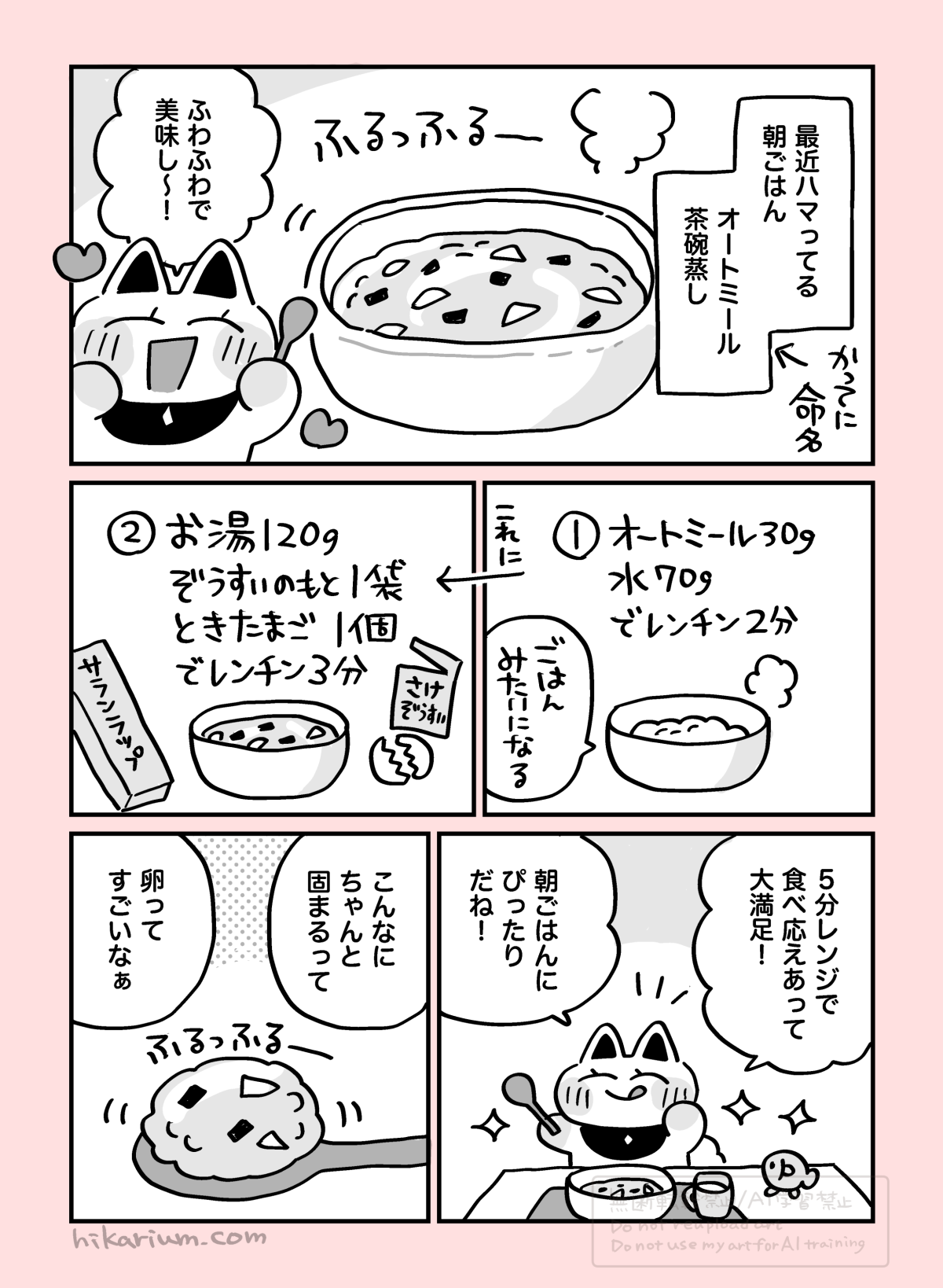 ①オートミールは「600Wで2分」