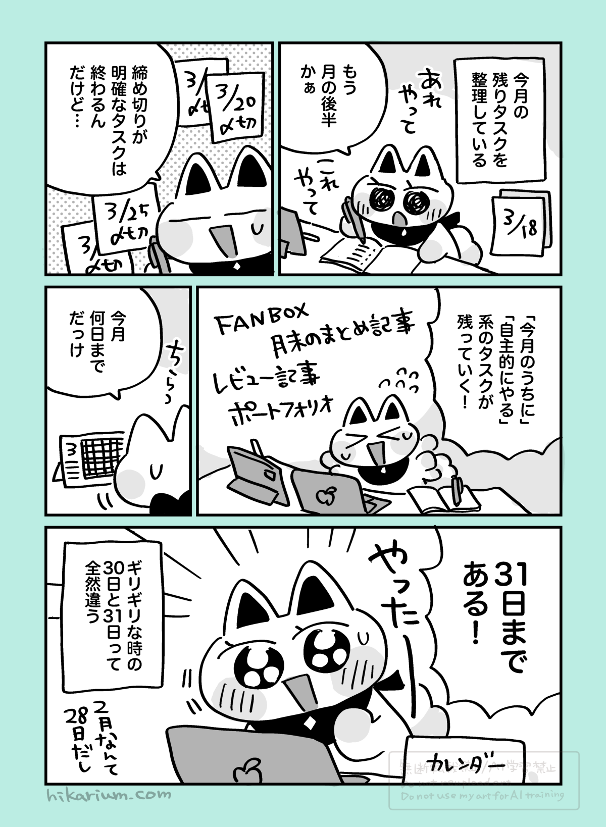毎月18日ごろに「月の残りタスク」を洗い出しています。